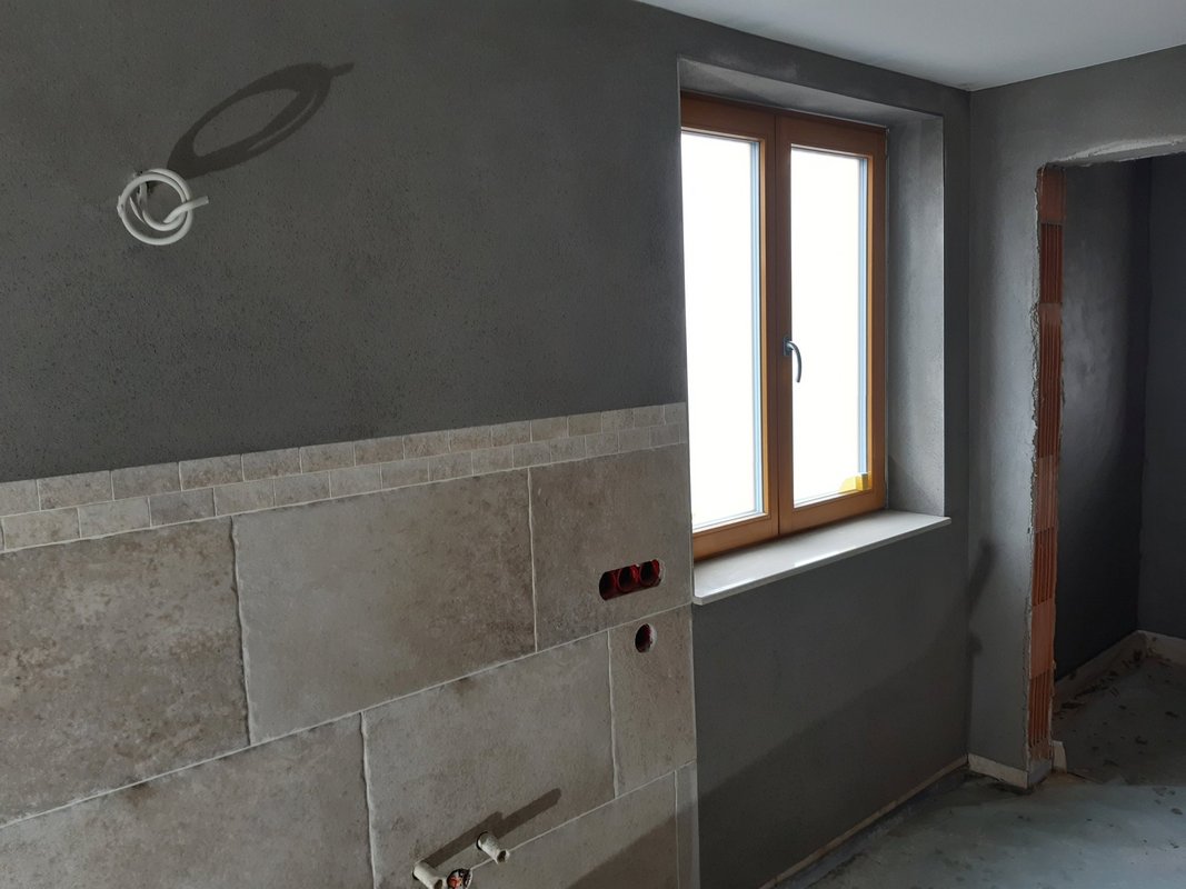 Fliesen mit Kalkputz